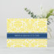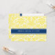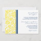 Cartões de convite de casamento em elegante e contemporâneo amarelo-limão brilhante, azul-marinho escuro, e padrão clássico e chic floral damask vintage. Personalize estes convites com os detalhes do seu casamento. Disponível em produtos correspondentes para todas as suas necessidades de casamento.