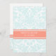 Cartões de convite de casamento em azul-azul-azul-azul-turquesa, cor de laranja-pêssego e padrão clássico e chic floral damask. Personalize esses convites com seus detalhes de casamento. Disponível em produtos correspondentes para todas as suas necessidades de casamento.