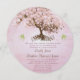 Convites de Casamento de Pássaros do Amor Vintage Rosa e Verde com Árvore de Folhas em Coração - Mais Rosa no Fundo do que Chocolate Rosa Misty