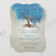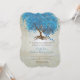 Árvore Mágica de Amor Oceano Azul Pêssego em Tea Sretado Silver Toned Metallic Paper com uma Sobreposição de Música Antica Folha e algumas designs giras para melhorar as raízes do amor neste convite único para casamento em florestas..