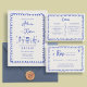 A mão desenhou convites para casamentos azuis franceses para o seu dia especial!