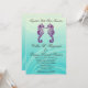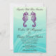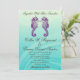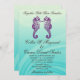Os convites para casamento com temas de praia ou destino apresentam dois cavalos marinhos sobre um fundo oceânico com ondas em uma paleta roxa, azul, marrom e branca contemporânea, bem como campos de texto que você pode personalizar de acordo com seu gosto.