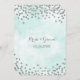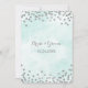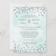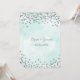 Convites de casamento personalizados em um padrão azul claro de cor azul turquesa com um confete glamouroso de prata. Observe que prata é apenas efeito fotográfico.