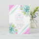 A aquarela solta suculenta convites de casamento de folhagem. design de convite bonito em verdes azuis, verde, rosa e roxo. Personalize com seus próprios detalhes de casamento. Outros itens correspondentes disponíveis na coleção de arte suculenta. Arte com aquarela original de Sarah Trett para www.mylittleedenweddings.com no zazzle.