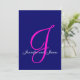Marinho Azul e Rosa Quente - Convite Elegante Monograma Design por Elke Clarke ©. Personalize com seu monograma, nomes e cores de casamento. Adicione todas as suas informações de casamento na parte de trás do cartão usando os prompts de menu fáceis de usar do Zazzle. Vem com vazio envelope branco.