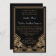 Um convite de casamento ousado, sofisticado e elegante com um tema vintage "Gatsby Excelente" dos anos 20 em tons de ouro preto e escarnecido. Um fundo preto a jato destaca a borda do estilo rico, geométrica do Art Deco, em tons de bege ouro. As fontes de estilo de período fundamental foram selecionadas para o seu texto de evento especial. Os nomes do noivo e do noivo são enfatizados usando um tom de cinza prateada contrastante. Selecione o tipo de papel desejado na ampla faixa disponível para concluir o efeito.