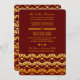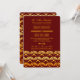 Estes convites para casamento apresentam uma paleta de cores vermelha e dourada, padrões de fãs geométricos asiáticos e outros detalhes estilísticos inspirados no Art Deco e nos vinte e poucos anos ruidosos. Você pode personalizar os campos de texto de exemplo de acordo com o seu gosto.