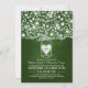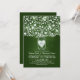 Belo convite de casamento verde-escuro com cheio de jarro de pedras de flores, folhas, ramos de árvores e corações amorosos brilhantes. Convidado casual perfeito para seu casamento rústico com jarras de pedras florais.