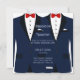 Convites para casamento de gay branco e azul quadrados personalizados, quando os grupos estão hospedando, com texto alterável
