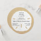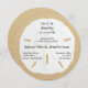 Convites de casamento de areia redonda e dólar. Imagem de shell realista com letra preta, caligráfica, sobre um fundo de areia. O texto informal tem a data no topo com os nomes da noiva e do noivo no centro. Um endereço de recepção pode ser incluído. Opção de papel quadrado também.