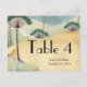 Cartões de Número de Mesa para Casamento Destino com Palmeira e Grou Exóticos em Verde Azul e Marrons. Cartões de Número de Mesa com Grou de Amor Vintage para o Casamento no Jardim do Deserto Destino. ou Convites de Tipografia Vintage para Destino à Beira-Mar. Ótimo para Locais de Casamento em Ilha de Navio de Cruzeiro em Bosque de Palmeiras Tropicais.