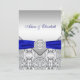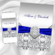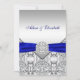 Convite de casamento elegante diamante prata e azul real.