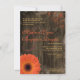 A redação do convite de casamento é numa cor amarelo claro/dourado. Estes convites de casamento são perfeitos para um casamento de outono, mas também são ótimos para qualquer época do ano, especialmente para noivas que estão usando gerberas margaridas laranja ou pêssego nos seus buquês de noiva ou arranjos de mesa de recepção. Estes também são ótimos para casamentos em celeiros, e qualquer pessoa que esteja tendo um casamento com tema rústico. Você também pode atualizar para cantos arredondados.