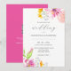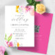 Faça uma declaração ousada com nossos convites de casamento ecológicos, apresentando arte floral vibrante em tons de fúcsia, rosa e laranja. Esses convites florais em aquarela combinam papelaria de casamento boho-chic com conveniência moderna, incluindo um código QR que permite aos convidados acessar facilmente os detalhes do seu casamento. A tipografia de caligrafia elegante, combinada com uma fonte sans-serif limpa, é emoldurada por flores vibrantes em aquarela, enquanto o verso apresenta um fundo de fúcsia marcante para o seu código QR e informações adicionais.