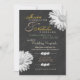 Estilo de sinal de giz... Retro sente convites de casamento de chalkboard com flores de gérbera preto e branco. O texto em forma de giz está em cores rosa pastel e verde, enquanto os primeiros nomes estão em um script muito ornamentado em uma cor de ouro amarela e o restante em uma cor neutra mudada. O sensor está ligeiramente inclinado. Um convite brilhante, mas elegante. A papelaria de casamento está disponível na Casa de Casamento de Rizziez.