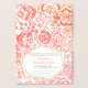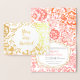 Coral vivo elegante, folha cor-de-rosa e dourada e Convites Florais de Casamento de Cor de Água Verde. Algodão estético Floral Boho Bohemian Temas de Casamento ou Casamento Russo de Barn Country. Casamento Foil Real.