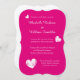 Convites de casamento Fuchsia | cor rosa-néon quente com corações brancos. Design elegante com corações brancos vestidos. Texto personalizável e qualidade de papel de luxo. Forma de recorte de suporte.