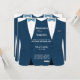 Convites de casamento azuis e brancos quadrados, quando os grupos estão hospedando, com texto alterável