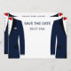 Cartões de convite de casamento gay azul e branco Salve as Datas com texto mutável
