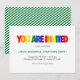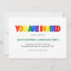 Um convite de casamento de estilo tipográfico simples, o design apresenta o texto "VOCÊ É CONVIDADO" com as cores da bandeira gay, este texto não é editável, se precisar alterá-lo, por favor entre em contato comigo.
