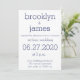 Convites de casamento modernos, azuis-brancos e marinhos, quando a noiva e o noivo estão hospedando, com texto personalizável