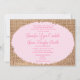 Este convite de casamento rústico é perfeito para qualquer casamento no interior oeste. Apresenta um fundo arrombado impresso em cada lado do convite. A inscrição de convite é impressa em um oval cor-de-rosa tachado com bordas rasgadas. O burlap é apenas um design impresso. Não é um tecido de burlap. Este anúncio de casamento é perfeito para o casal que está tendo um casamento de faroeste ou celeiro e quer incorporar burlap no tema de cor do casamento.