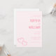 Este convite de casamento apresenta um design minimalista e elegante com um fundo rosa suave, criando uma atmosfera calorosa e convidativa. O layout é limpo e bem espaçado, destacando os nomes em letras serifadas em negrito e corações sutis em arte de linha que adicionam um toque de romance. Com espaços reservados personalizáveis para detalhes pessoais, oferece versatilidade, mantendo uma estética moderna e discreta, perfeita para casais que buscam simplicidade e clareza nos convites do seu dia especial.