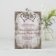 Estes convites de casamento de países rústicos apresentam um Design de madeira branca com uma aresta castanha angustiada e dois corações duplos entrelaçados no topo do convite, simbolizando a união da noiva e do noivo. Estas são excelentes para convites para casamento no país rústico e para ter um tema de casamento de chique ou casamento no país rústico.