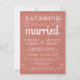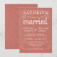 Coma, beba, e seja casado — convites de casamento rústicos de campo, estilo Vintage — Rolamentos roxos, encaracolados e tipografia de moda antiga em um fundo de colmeia rosa cor de pêssego coral. Adicione seus nomes e informações de casamento neste modelo fácil de usar. O elegante, mas divertido e caprichoso, escrevendo de script de estilo chalkboard pode ser modificado para o seu tema de casamento formal ou semiformal. O estilo moderno casual é perfeito para casamentos contemporâneos modernos, com um toque divertido de encanto sofisticado para a noiva e noivo tradicionais. Entre em contato conosco para obter ajuda com a personalização se precisar de espaço adicional para os detalhes do casamento. Outros tamanhos e estilos de quadro disponíveis.