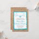 Rústicos índios de cera de cera de caça ao Impressão do tema Burlap Convites de casamento com uma ilustração montada de formigueiro de cerco com um coração esboçado em azul-claro aqua sobre um fundo de impressão de design de burlap de vintage de campo impresso. O design de impressão de arrombamento também está na parte de trás do anúncio do casamento. Estas são excelentes para caçar casamentos temáticos, caçadores, amantes da vida selvagem, e qualquer um que ama uma turquesa rural e um casamento marrom.