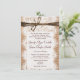 Apresenta um fundo arrombado impresso em cada lado do convite. O convite tem um embelezamento impresso de renda no topo da toca. O topo tem um ornamento impresso de fio. A toca, o lugar e o fio são apenas designs impressos. Não se trata de um tecido real de burlap, nem de rendas reais ou de fio.