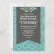 Convite de casamento com fundo de padrão de círculos geométricos e padrão de folha selvagem clássica por cima. Cor tema turquesa com design simples. Você está planejando um casamento na primavera ou verão com belas flores por todos os lados? Então, talvez este seja o cartão perfeito para você. Personalize as palavras e fontes para se adequar à sua ocasião. Visite minha loja para mais variações deste design em cartão de Save the Date, etiqueta de endereço e mais.