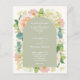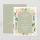 Os convites de casamento "tudo-em-um" verde-sábio apresentam os seus detalhes na frente em cartazes quicos com lindas flores de aquarela - hífenes brancas e verdes, rosas cor-de-rosa e creme, margaridas, pequenos caules e folhas - e um Código QR para o seu website de casamento no verso. Impresso no barato, 4,5" x 5,6" em papel de 110 lb. **ENVELOPES BRANCOS são um custo adicional. O Serviço de Design ao Vivo pode ajudá-lo com o layout do seu design ou cores, se necessário. CORRESPONDENDO a itens na nossa loja.