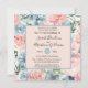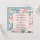 Este lindo conjunto de convites de casamento virtuais florais botânicos quadrados é a maneira perfeita de convidar todos para o seu casamento! Flores rosa e azul desbotado em aquarela enquadram este lindo convite de casamento.