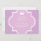 Convites de chá de bebê cor-de-rosa com coroa princesa. Design elegante para uma nova menina | Convites personalizados. Texto personalizado do anúncio e cor de fundo. Design cor-de-rosa Pastel com um lindo padrão de fêmur. Lavanda roxa de zag.