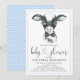 Convites de chá de bebê de vaca com bezerro de vaca bebê aquarela fofo vestindo gravata borboleta em um fundo de bolinhas azuis. Estes adoráveis convites de chá de bebê de vaca são facilmente personalizados para o seu evento, basta adicionar seus detalhes. Você também pode adicionar uma cor de fundo.