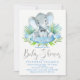 Convites de chá de bebê de elefante para meninos com adorável bebê elefante usando uma gravata borboleta fofo em um fundo de folha de palmeira. Estes convites de chá de bebê de elefante são facilmente personalizados para o seu evento, basta adicionar os detalhes do seu evento.