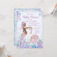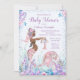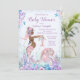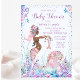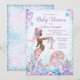 Convites de chá de bebê de sereia com adorável mãe sereia étnica afro-americana para segurar um lindo roupinha de bebê sereia em um lindo fundo roxo e azul turquesa sob o mar. Este convite de chá de bebê de sereia é facilmente personalizado para o seu evento, basta adicionar seus detalhes.