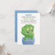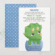 Um pequeno e fofo triceratops verde bebê com chifres amarelos espreita da casca do ovo! Perfeito para chá de bebê temático de dinossauros para a futura mamãe que está esperando um menino. O design é criado digitalmente com efeito de aquarela. Personalize facilmente os detalhes da festa no modelo de texto fornecido.