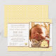 Dê as boas-vindas à chegada do pequeno que é fofo ao extremo com este convite de chá de bebê elegante, sofisticado e moderno com tema de abelha em amarelo, branco e marrom. O design inclui uma abelha fofa voando e deixando um rastro em forma de coração, uma colmeia amarela com uma bandeirinha que diz baby (não editável), um padrão de favo de mel hexagonal amarelo e branco, e espaço para personalização com a foto do bebê. Personalize facilmente com os detalhes da sua festa.