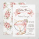 Convites de chá de bebê de menina com uma adorável raposa bebê em um lindo fundo floral rosa. Esses convites de chá de bebê de raposa são facilmente personalizados para o seu evento, basta adicionar seus detalhes.