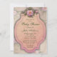 Convites de chá de bebê menina com rosas rosa, verde e marfim.