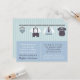 Há algo simplesmente fofo em roupas e acessórios de bebê miniatura! Assim, anuncie a chegada do pequeno cavalheiro com este convite que vem com roupas de bebê penduradas nas paredes, incluindo fralda de bebê, gravata borboleta inteligente e camisa e shorts com suspensórios, um colete com padrão de diamante e gravata azul-marinho, e um macacão de bebê com gravata borboleta falsa e suspensórios. Padrão de listras azuis para o fundo. Personalize facilmente com os detalhes da sua festa.