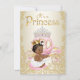 Convite de chá de bebê de princesa afro-americana com adorável princesa bebê étnica em um belo carrinho de princesa rosa e dourado. Você pode personalizar facilmente este convite de chá de bebê de princesa afro-americana rosa e dourado para o seu evento, simplesmente adicionando seus detalhes no estilo de letra e redação que preferir. Este é um design impresso sem brilho, jóias, laços, etc. reais.