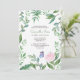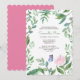 Este convite para chá de noiva apresenta uma borboleta graciosa cercada por vegetação exuberante e rosas cor-de-rosa suaves, criando um design romântico inspirado na natureza. Perfeito para convites de chá de noiva com borboletas e flores, este convite combina charme campestre com um estilo floral elegante. A obra de arte emoldura lindamente os detalhes do seu evento, enquanto um verso verde coordenado adiciona um toque final polido. Uma escolha ideal para celebrações de primavera, verão, outono ou inverno, incluindo convites para chá de casal, este design parece ser ao mesmo tempo atemporal e de coração.