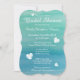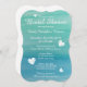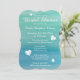 Convites de chá de panela de aquarela do tema da praia. Design de cor azul-de-água-aqua / turquesa com pequenos corações em punho. Bonitos convites para festas de casamento. Modelo personalizável com nome, data e endereço das noivas. Pintura de destino de verão.