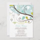 Uma ilustração da árvore branca cheia de corações e corações cardíacas com dois pombinhos azuis e verdes. Totalmente fofo e adorável, convite perfeito para uma festa de primavera ou chá de panela de verão.