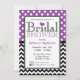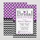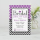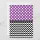 Convites de chá de panela brancos e na moda com bolinhas brancas sobre roxo no topo e um padrão zigue-zague preto e branco na metade inferior. Personalize com os detalhes do chá do futuro noivo e escolha seu tipo de papel também!
