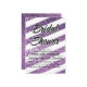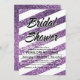 Convites de chá de panela com brilho roxo e listras. Disponível em outras cores. Fácil de personalizar!