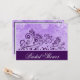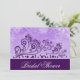 Convites de chá de panela de floco de neve roxo de inverno—combinam com os convites de casamento, salvem as datas e mais informações encontradas abaixo nesta página. Cada convite apresenta um design elegante floco de neve em ambos os lados, em lilás vibrante ou roxo lavanda, com uma flor roxa escura ou colorido violeta. Estes convites para casamentos de flocos de neve de inverno são feitos em estoque de cartão básico de alta qualidade. entretanto, você pode mudar o estoque para linho, feltro (gravado), reciclado e várias tonalidades metálicas se quiser com o número 2 (escolha seu estilo, tamanho e tipo de papel) abaixo do botão laranja adicionar ao carrinho. Também nessa opção é apresentada uma lista dos custos adicionais de uma reserva de cartão mais antiga. Cada convite tem um envelope branco.
